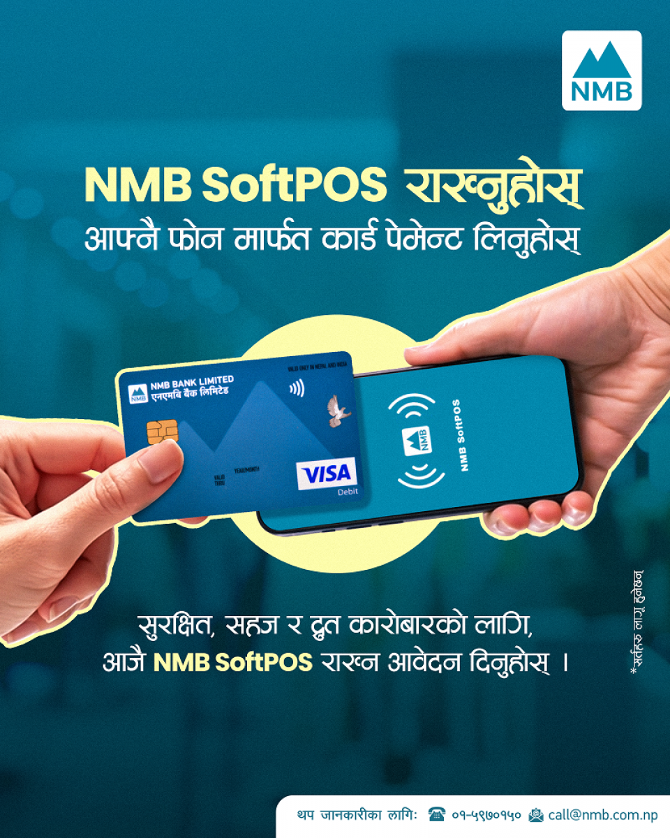 काठमाण्डौ । एनएमबि बैंकले नेपालमा पहिलोपटक सफ्टपोस (SoftPOS)सेवा सुरु गर्दै डिजिटल भुक्तानी प्रविधिमा एक महत्वपूर्ण कदम अघि बढाएको छ । कुनै पनि एनएफसी सपोर्ट गर्ने एन्ड्रोइड मोबाइल फोनलाई पोस मेसिनको रूपमा प्रयोग गर्न सकिनेछ ।