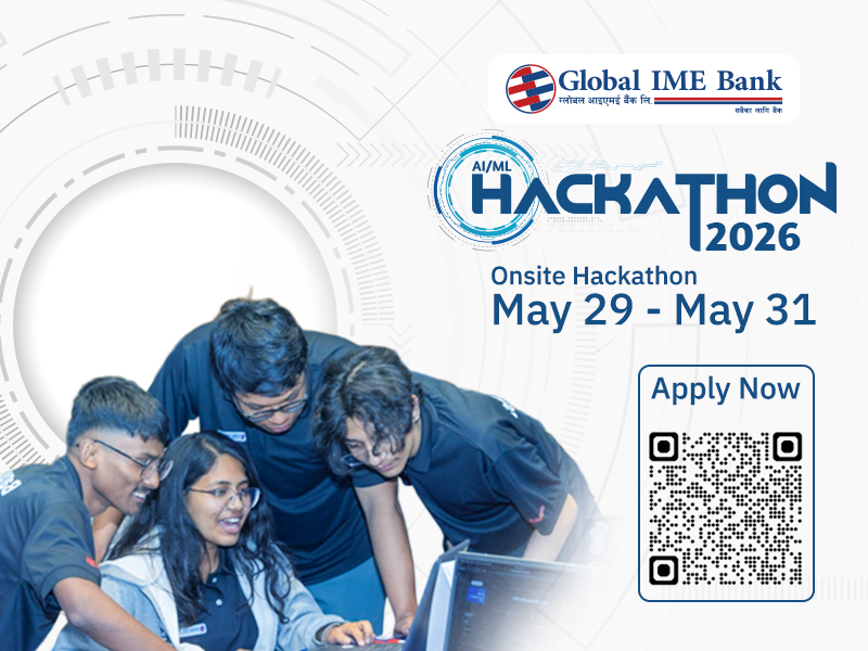 बैंकले कृक्रिम बुद्धिमत्ता (एआई) र मेसिन लर्निङ (एमएल) सम्बन्धी ग्लोबल आइएमई एआई÷एमएल ह्याकाथन दोश्रो संस्करण २०२६ आगामि मे महिनाको २९–३१ मा आयोजना गर्नेछ । उक्त प्रतियोगितामा सहभागी हुन प्रविधिमा रुची राख्ने विद्यार्थी, स्टार्टअप, डेभलपर, इन्जिनियर, डेटा वैज्ञानिक, अनुसन्धानकर्ता तथा प्रविधि क्षेत्रका पेशाकर्मीहरुका लागि आवेदन खुल्ला गरिएको छ । प्रतियोगितामा सहभागी हुन मे ४, २०२६ भित्र बैंकको वेवसाइट मार्फत् आवेदन दिन सकिनेछ ।