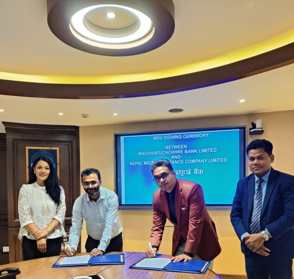 नेपाल माइक्रो इन्स्योरेन्स र माछापुच्छ्रे बैंकबीच बीमा व्यवसायका लागि सम्झौता