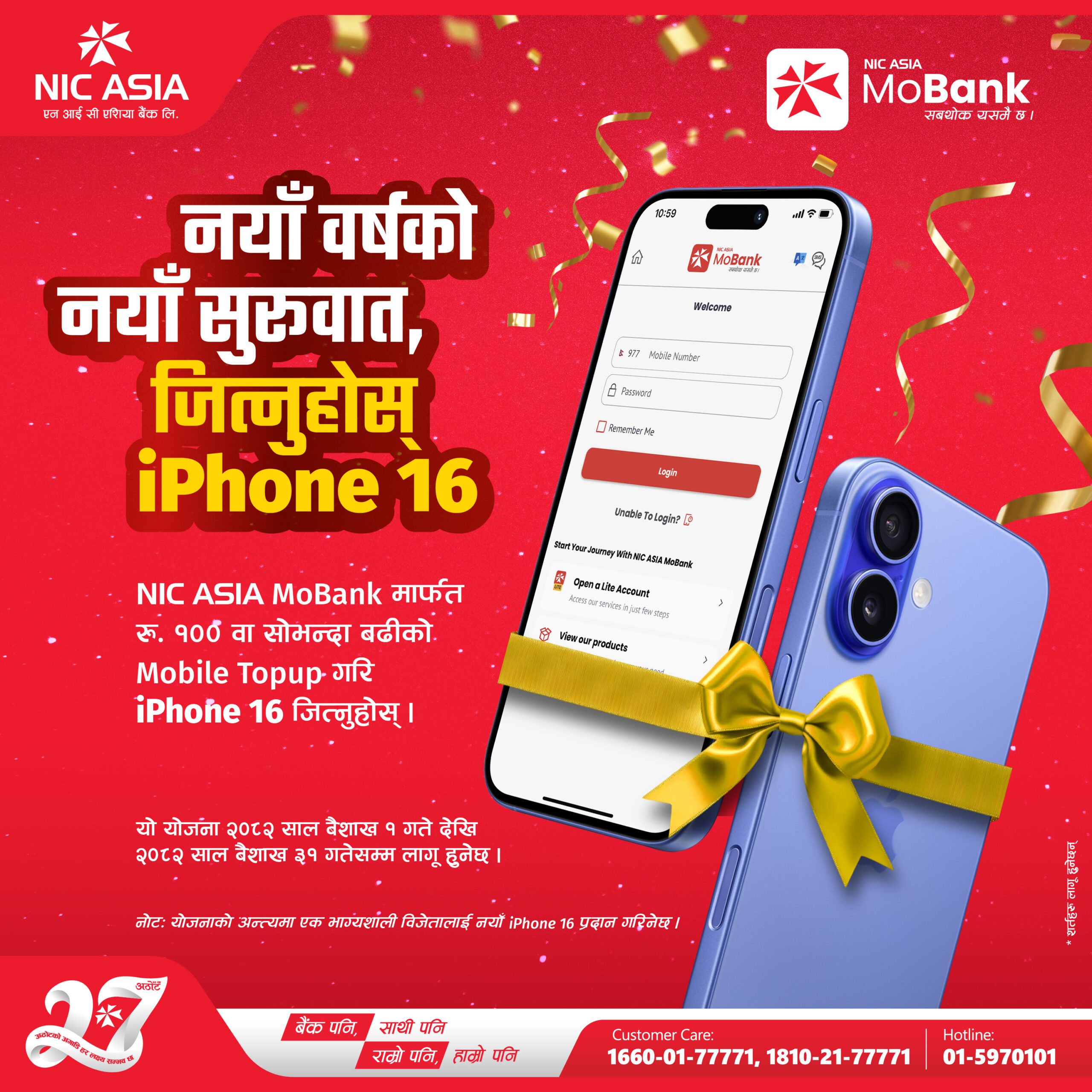 एनआईसी एशिया बैंकको ‘नयाँ वर्षको नयाँ सुरुआत, जित्नुहोस् आइफोन १६’ योजना सार्वजनिक