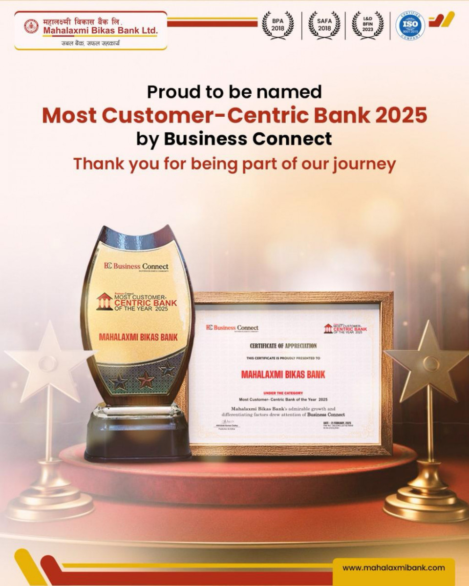 ग्राहक केन्द्रीत सेवामा अब्बल महालक्ष्मी विकास बैंकले पायो अन्तराष्ट्रिय अवार्ड