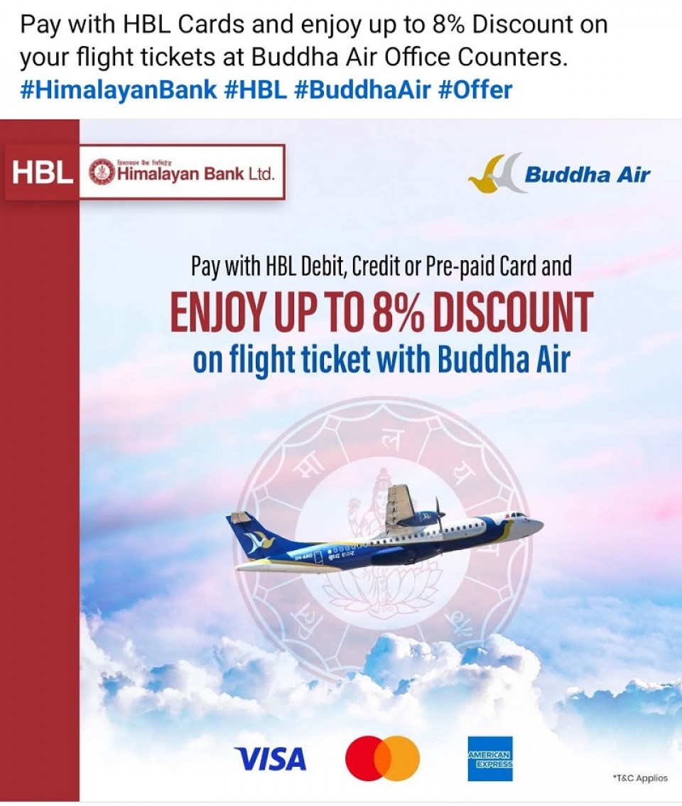 हिमालयन बैंकका ग्राहकले बुद्ध एयरको टिकट खरिदमा छुट पाउने