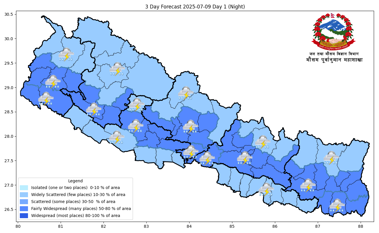 कोशी,वाग्मती, लुम्बिनी र सुदूरपश्चिममा भारी वर्षा हुने पूर्वानुमान