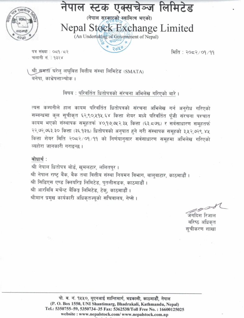 काठमाडौं । समता घरेलु लघुवित्त वित्तीय संस्तथाको संस्थापक शेयर सर्वसाधारण शेयरमा परिणत भएको छ । कम्पनीको ३ लाख ५२ हजार ७२९ दशलमव ४५ कित्ता संस्थापक शेयर सर्वसाधारण शेयरमा परिणत भएको हो । अब कम्पनीको शेयर संरचना संस्थापकको ६३ दशलमव ८७ प्रतिशत र सर्वसाधारणको ३६ प्रतिशत १३ कायम भएको छ ।