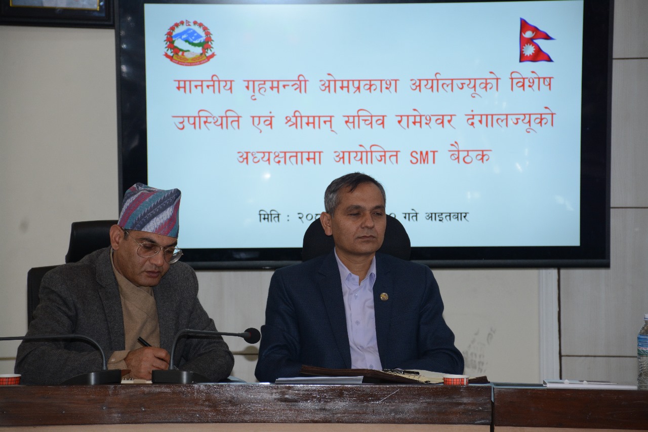 आइतबार गृह मन्त्रालयमा आयोजित गृह सचिव रामेश्वर दंगालको अध्यक्षतामा बसेको नियमित ‘एसएमटी बैठकमा विशेष उपस्थिति जनाउँदै मन्त्री अर्यालले सम्पूर्ण कर्मचारीहरूले एक्टिभिष्ट जसरी आ(आफ्नो जिम्मेवारी निर्वाह गरी सम्पूर्ण ध्यान निर्वाचन र यसको तयारीमा लाग्न समेत निर्देशन दिए ।